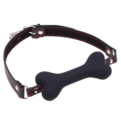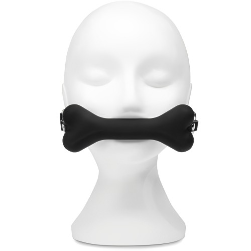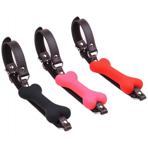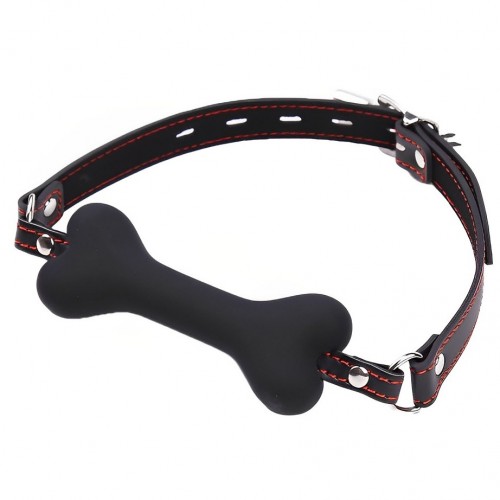 Сам кляп изготовлен из силикона. Выполненный в форме кости он не будет удерживать рот широко раскрытым, а просто не позволит сомкнуть челюсти.