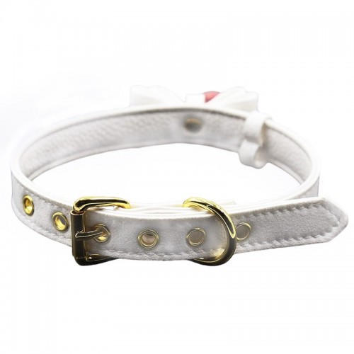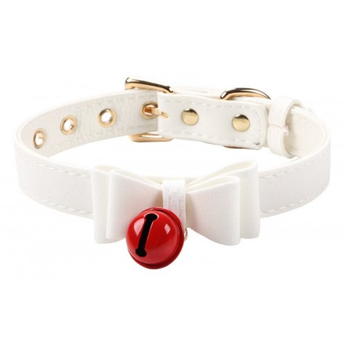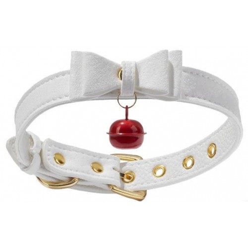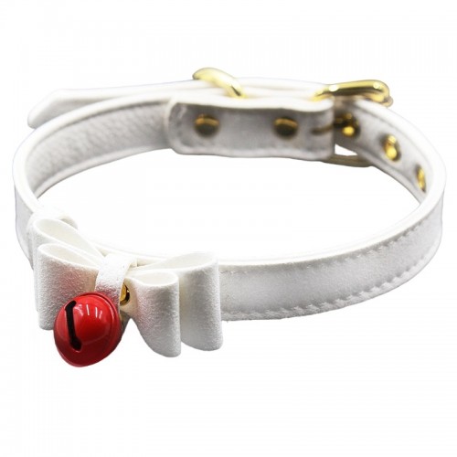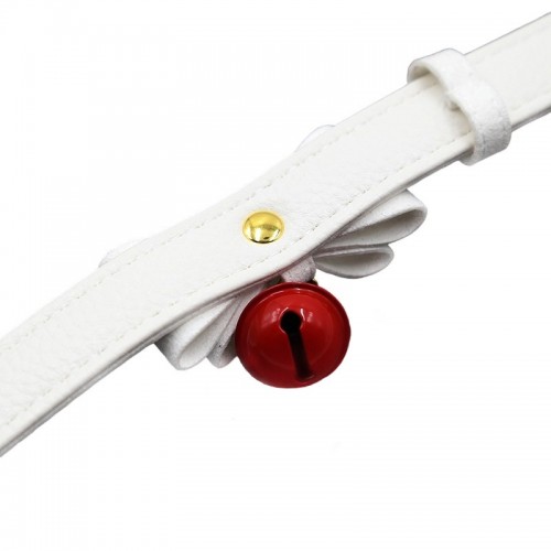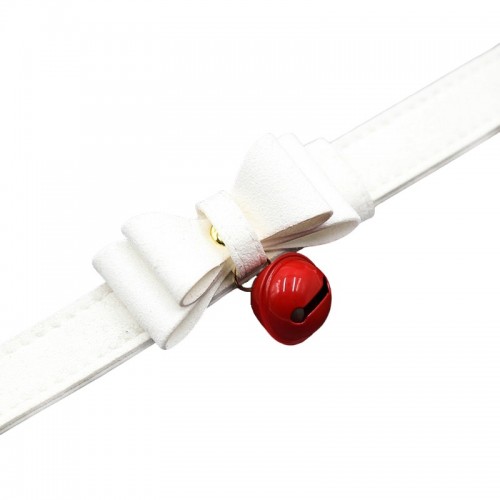 Ошейник белого цвета декорированный бантом и бубенчиком
