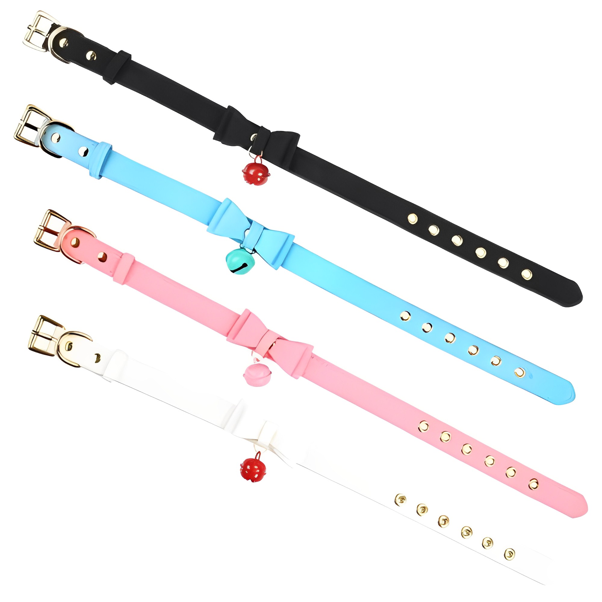 Ошейник черного цвета декорированный бантом и бубенчиком