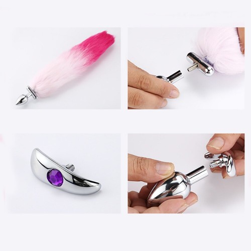 Анальная пробка со съемным хвостиком изготовлена из медицинской стали.
