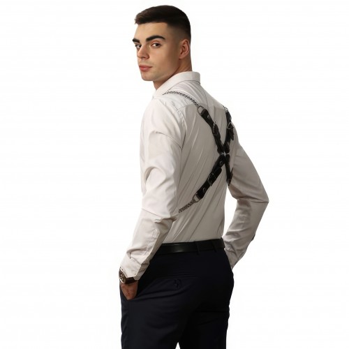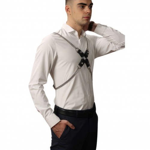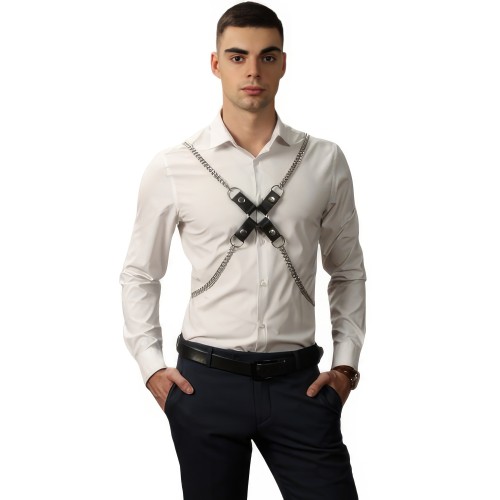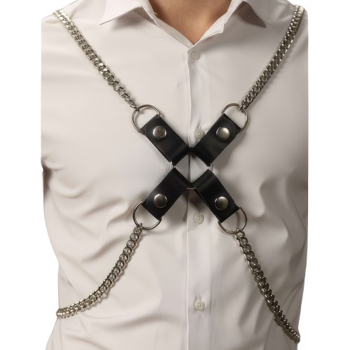 Брутальная крестообразная сбруя для мужчин с металлическими цепями