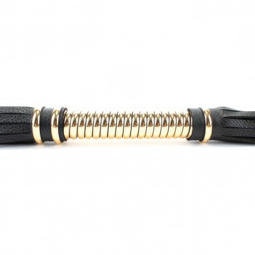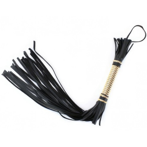 Черная кожаная плеть с витой золотой ручкой 60 см