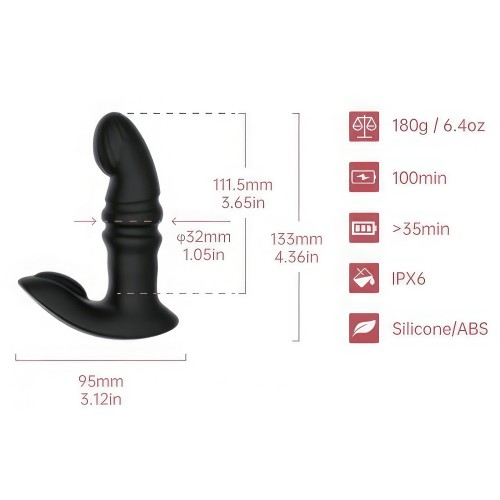 На всей поверхности вагинального отростка имеется рельеф - для дополнительной стимуляции при использовании, функция поступательных движений обеспечивает имитацию настоящих фрикций.