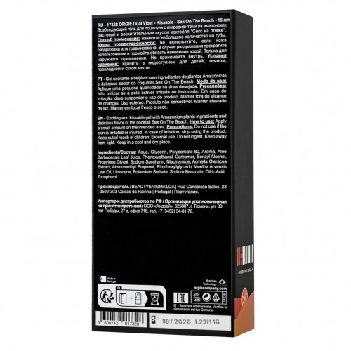 Съедобный гель с эффектом вибрации Orgie Dual Vibe со вкусом коктейля секс на пляже 15 мл